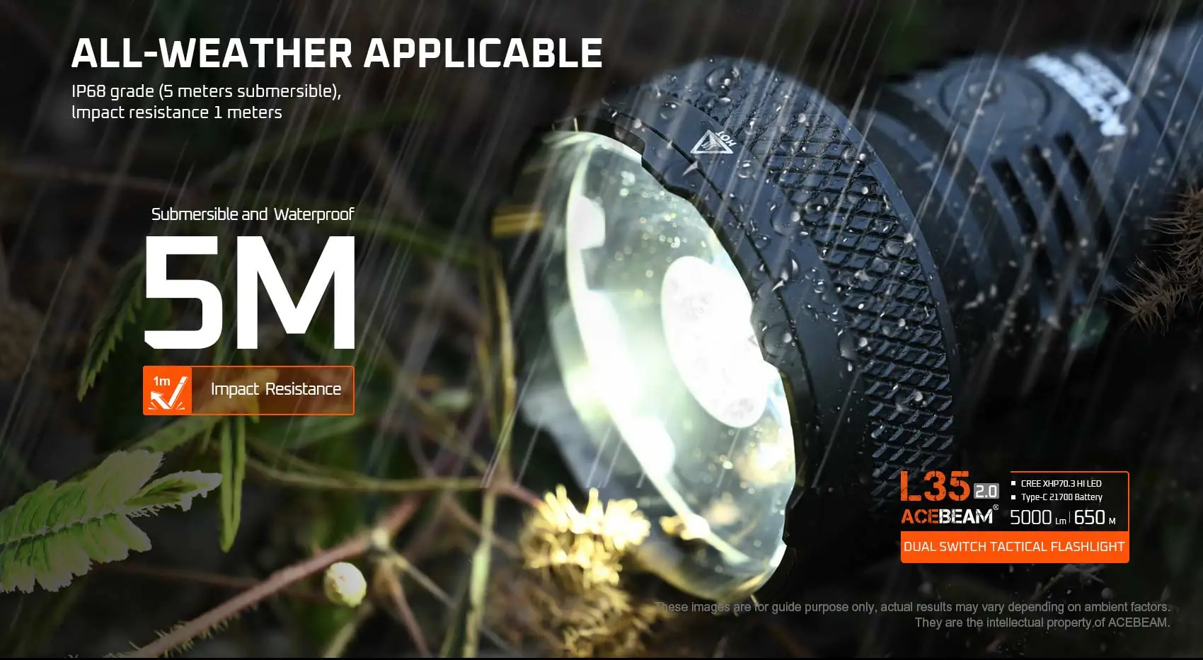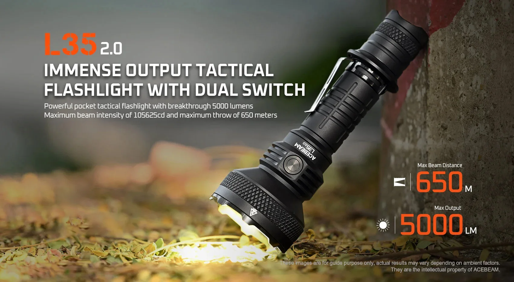 ACEBEAM L35 2.0 Tactical Flashlight 5000LM Super Bright 650M Long Range XHP70.3 HI LED Flashlights with Dual Switch
