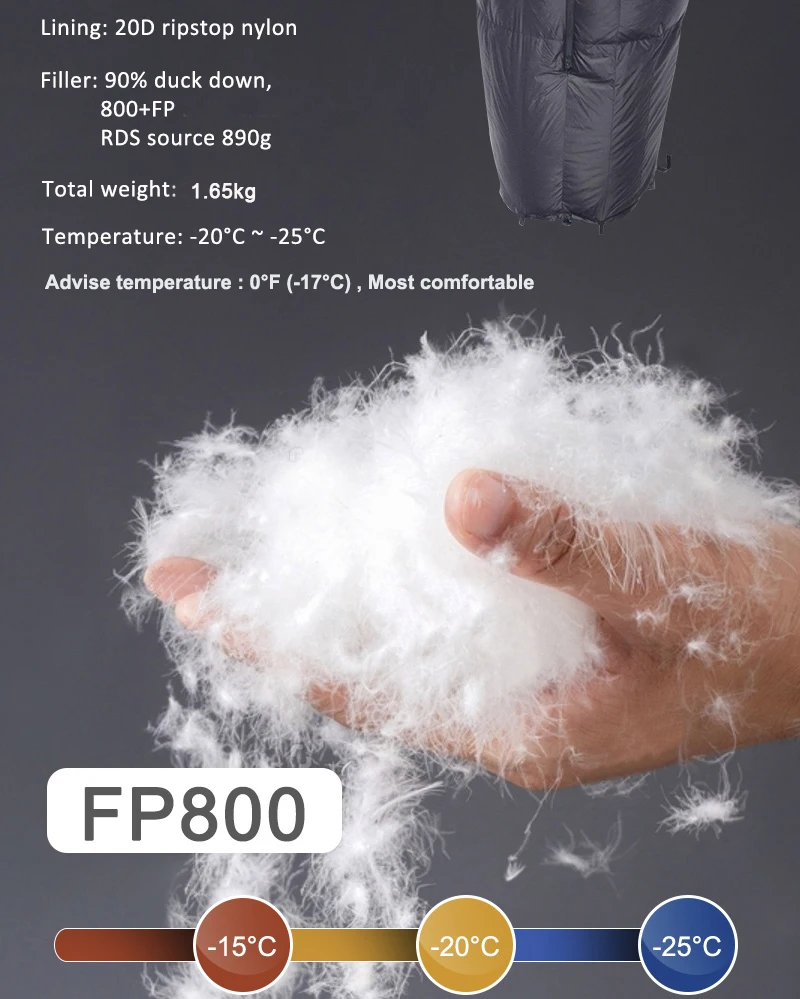 Filler: 90% duck down,800+FP DWR treated, RDS source 890g