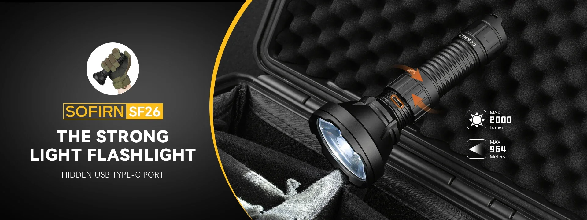 1. High Performance: SF26 can illuminate up to 964 meters, and the maximum brightness can reach 2000lm. It can illuminate a wider range, provide a better view, and it is safer to illuminate at night. It is very suitable for night walking/walking dogs/patrolling;