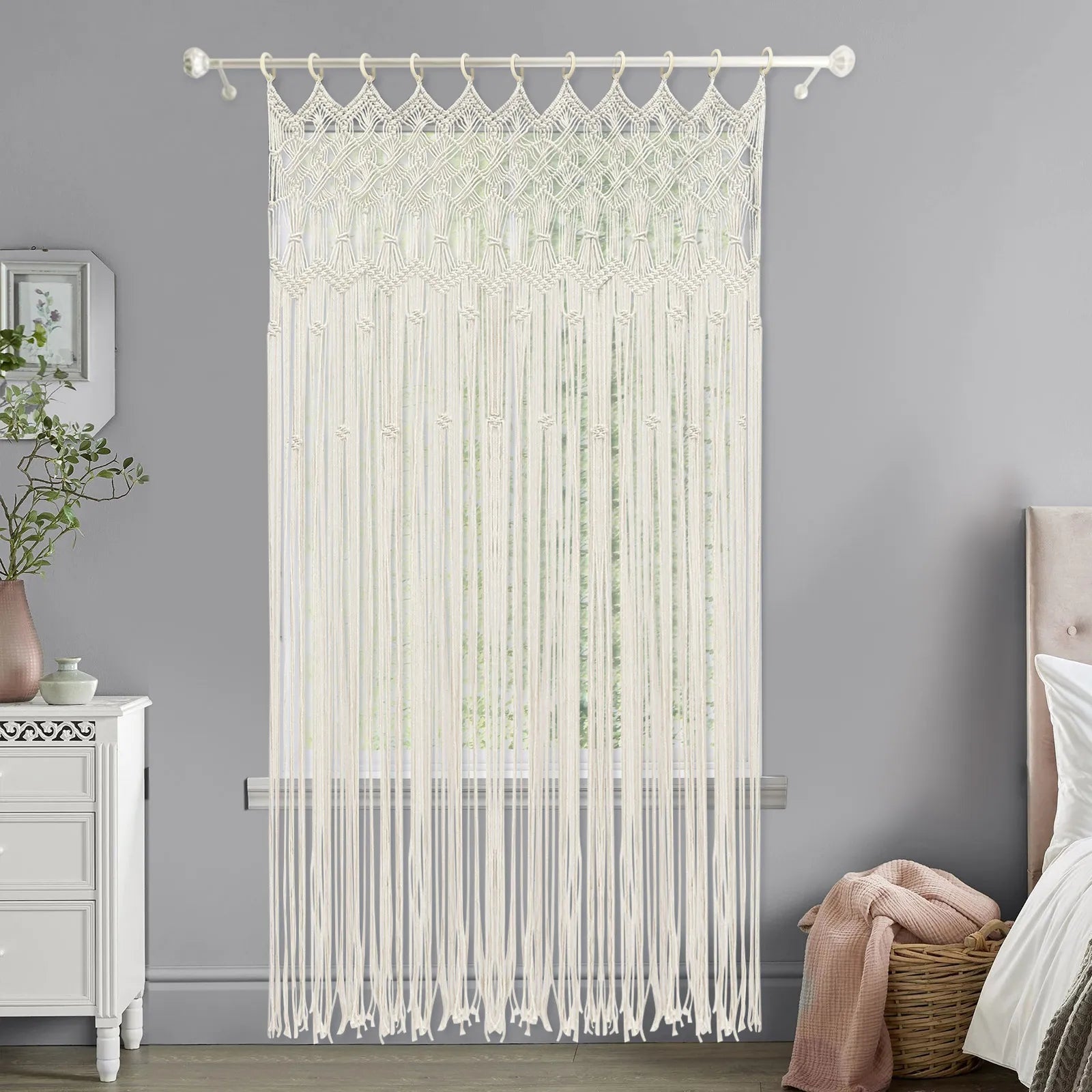 White Macrame Wall Hangings, Boho Style Handmade Tapestry Curtains